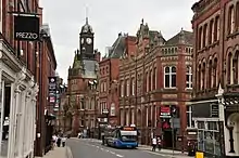 By 1881, the area was regarded as a slum, and was cleared so that a new street could be constructed. Designed to improve access to the new Skeldergate Bridge, it was named Clifford Street after nearby Clifford's Tower.[3][2] The Friends Meeting House was extended, with a new main entrance on the new road. From 1882, the York Tramways Company ran horse-drawn trams along the street. In 1892, a building was opened to house the city' police headquarters and main fire station. The fire station moved to a new building on the street in 1938, which was demolished in 2018 and replaced with apartments.[1][2][4] In 1910, the city's electricity board moved into offices on the street, also setting up a showroom.[1] The York Dungeon visitor attraction is located on the street.[5]