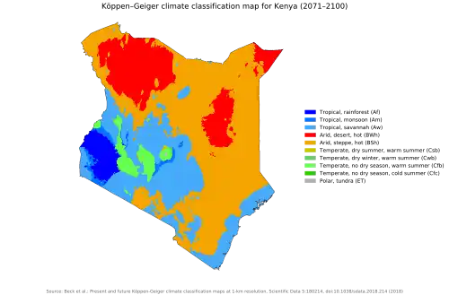 Predicted Köppen climate classification map for Kenya for 2071–2100