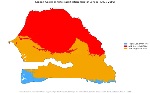 Predicted Köppen climate classification map for Senegal for 2071–2100