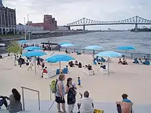 - ↑ Riga, Andy (March 2, 2012). "Montreal's Old Port beach: sand, boardwalk, umbrellas – but no swimming and it won't be free". Montreal Gazette. Archived from the original on August 26, 2013. Retrieved March 2, 2012.