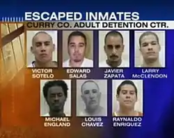 Eight inmates escaped from the Curry County Adult Detention Center in Clovis on August 24, 2008 by cutting a hole in the roof and leaping off the building. The inmates were:
