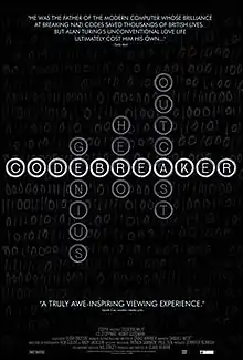 Codebreaker, also known as Britain's Greatest Codebreaker, is a 2011 television docudrama aired on Channel 4 about the life of Alan Turing. The film had a limited release in the U.S. beginning on 17 October 2012. The story is told as a discussion between Alan Turing and his psychiatrist Dr. Franz Greenbaum. The story is based on journals maintained by Dr. Franz Greenbaum and others who have studied the life of Alan Turing and also some of his colleagues.[1]