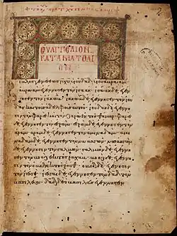 Codex Basiliensis A. N. IV. 1, known as Minuscule 2 (in the Gregory-Aland numbering of New Testament manuscripts), ε 1214 (in von Soden's numbering of New Testament manuscripts),[1] is a Greek minuscule manuscript of the New Testament, written on vellum. Using the study of comparative writing styles (palaeography), it has been dated to the 11th or 12th century.[2] The manuscript has complex contents.