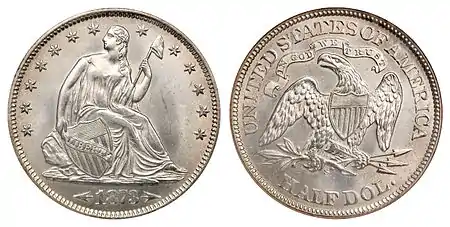 Also eliminated by the 1873 act were the two-cent piece, three-cent silver and half dime.[42] Although the first two coins circulated little, the half dime was still being heavily struck by the San Francisco Mint for use in the Far West, where paper money was disfavored.[62] The coins authorized by the 1873 act were the cent, three-cent nickel, five-cent nickel, dime, quarter, half dollar, Trade dollar, gold dollar, quarter eagle, three-dollar piece, half eagle, eagle, and double eagle.[61]