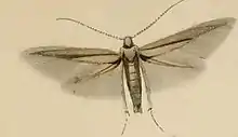 The wingspan is 6–8 mm (0.24–0.31 in). Adults are grey-white. The head is ochreous-grey. The antennae grey- whitish, ringed with dark grey. Forewings shining grey, ochreous-tinged. Hindwings grey..[2] They are on wing from late June to July in western Europe.[3]