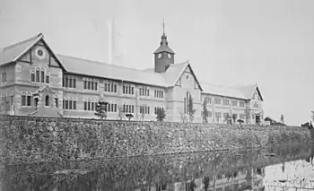 Engineering College Buildings: McVean was appointed as a chief surveyor for the Survey Department and extensively assisted Yamao, who had to head both the Survey and Engineering Institution. Morel and Yamao rushed to open the engineering college, but Morel passed away in October 1871. While McVean concentrated to design and construct the college buildings together with Henry Batson Joyner, he endeavoured to reunite Yamao with Hugh Matheson via Colin Brown.[6] Matheson kindly arranged appointment of teaching staff for the engineering college through his connection, Lewis Gordon, William Rankine and William Thompson (Lord Kelvin).[7]