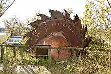 A chalk cutting machine preserved from the site's days as a chalk quarry