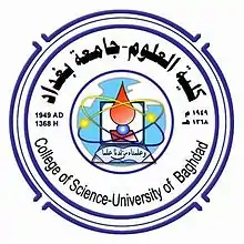 The College of Science is one of the Colleges of the University of Baghdad in Baghdad, Iraq. It was the first scientific college established in Iraq.[1] The main academic activities held in this college vary between pure and applied science. Beside its eight departments, the college also holds two research units. Being one of the earliest academic institutes formed in the Republic of Iraq, the College of Science establishment marked the (Day of Science).[2] This college was established on March 27, 1949, with the name of (The College of Arts and Science). The college was established with five scientific departments, namely: (Chemistry, Physics, Mathematics, Pathology and Anatomy). The Pathology and Anatomy departments were later joined together to form the (Department of Biology). Beside these, another four departments were added during the next fifty years, these are: Department of Geology (1953), Department of Computer Science (1983), Department of Astronomy (1998) and Department of Biotechnology (1999). The eight departments cover a wide range of branches of pure and applied sciences, which attracts many students as well as scientific researchers each year. Therefore, this college is considered as the largest scientific academic institute in the Republic of Iraq.