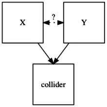 Conditioning on the collider via regression analysis, stratification, experimental design, or sample selection based on values of the collider creates a non-causal association between X and Y (Berkson's paradox). In the terminology of causal graphs, conditioning on the collider opens the path between X and Y. This will introduce bias when estimating the causal association between X and Y, potentially introducing associations where there are none. Colliders can therefore undermine attempts to test causal theories.