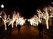 College Walk is illuminated in the winter months