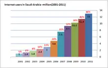 A graph showing the growth of Internet users in Saudi Arabia from 2001 to 2011