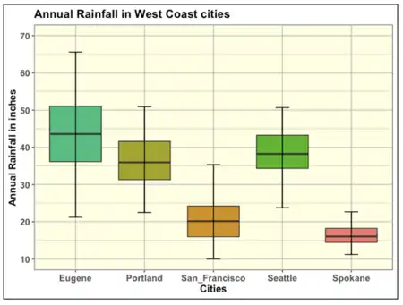 We are going to test if the average rainfall in five West Coast cities is statistically different. These cities are: