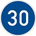 - ↑ The presence of an entry sign of a town or village is often accompanied with a speed limit; normally the generally valid speed limit of 50 km/h. Sign no. 2.30.1