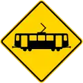 - ↑ Used in California only. Shared grade tram or streetcar crossings are typically unsigned in other jurisdictions.