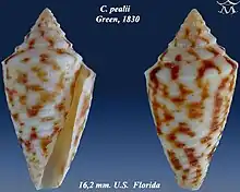 - ↑ Bouchet, P. (2015). Conasprella jaspidea pealii (Green, 1830). In: MolluscaBase (2015). Accessed through: World Register of Marine Species at http://www.marinespecies.org/aphia.php?p=taxdetails&id=836690 on 2015-07-31