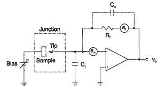 - ↑ Aguilera, L.; Lanza, M.; Porti, M.; Grifoll, J.; Nafría, M.; Aymerich, X. (2008-07-01). "Improving the electrical performance of a conductive atomic force microscope with a logarithmic current-to-voltage converter". Review of Scientific Instruments. 79 (7): 073701–073701–5. Bibcode:2008RScI...79g3701A. doi:10.1063/1.2952058. ISSN 0034-6748. PMID 18681702.