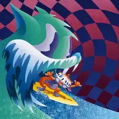 The cover art was done by Anthony Ausgang, known for his kitschy lowbrow art style.[10] The artwork depicts a hedgehog-like animal on a surfboard, surfing on a wave that is anthropomorphized as a cat about to swallow the creature. Commenting on the composition of the artwork, Ausgang stated that he tried to "use bright colors and get across ideas that are slightly dark."[11]