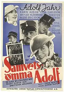 Conscientious Objector Adolf (Swedish: Samvetsömma Adolf) is a 1936 Swedish comedy film directed by Sigurd Wallén and starring Adolf Jahr, Karin Albihn and Weyler Hildebrand.[1] It was shot at the Råsunda Studios in Stockholm. The film's sets were designed by the art director Arne Åkermark.