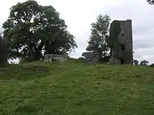 Coolamber Hall-House is an Anglo-Norman ruin in County Longford, Ireland that is dated to the early 13th century.[1] Possibly the residence of Thomas Nugent, 4th Earl of Westmeath, one of the commissioners for Plantation of Longford in 1620.[2][3] Described by Samuel Lewis as ‘the ruins of an old castle, which was besieged by Oliver Cromwell, it formed the boundary of the English Pale’.[4] Hall-houses of this type consist of two-storey buildings with the entrance doorway on the first floor. The entrance was accessed via an external staircase of wood or stone. The main feature of the building was the large first floor hall which was open up to the roof. The ground floor was accessed via a trapdoor or internal staircase and was probably used as a storage area. Many hall-houses like that at Coolamber have been rebuilt or altered considerably.[1]