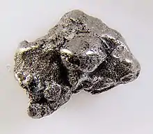 Cooperite is a grey mineral consisting of platinum sulfide (PtS), generally in combinations with sulfides of other elements such as palladium and nickel (PdS and NiS). Its general formula is (Pt,Pd,Ni)S. It is a dimorph of braggite.[2]