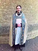 A cope may be worn by any rank of the clergy. If worn by a bishop, it is generally accompanied by a mitre. The clasp, which is often highly ornamented, is called a morse. In art, angels are often shown wearing copes, especially in Early Netherlandish painting.