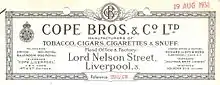 Cope Bros & Co was a company based in Liverpool that manufactured tobacco products from 1848 until 1952.[1][2]