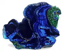 Constellation Copper's Lisbon Valley copper mine in San Juan County, southeastern Utah began mining in 2005, and produced its first copper in 2006.[58] The copper deposit is in sandstones of the Dakota Sandstone and Burro Canyon Formation. The primary copper mineral is chalcocite, which is thought to have been deposited from solutions ascending through the Lisbon Valley Fault. Above the water table, chalcocite has been oxidized to malachite, azurite, tenorite, and cuprite.[59] On November 30, 2007, Constellation announced that it would stop mining in 2008, because of unexpectedly low copper recovery. The company will continue to recover copper by heap-leaching already-mined ore as long as profitable.[60][61]