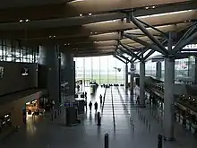 The main terminal at Cork Airport contains several shopping and eating facilities both before and after the security screening area, a bureau de change kiosk and ATM (cash machine) and a business lounge operated by Swissport. There are eight departure gates in the airport, two of which have an airbridge.[28] Wi-Fi is available throughout the terminal.[29]
