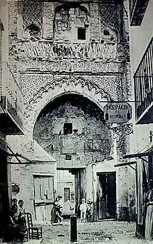 In 1494, after the fall of Granada to Christian Spain, the Catholic Monarchs granted it to their lieutenant, Juan de Arana[5] or Sancho Arana.[2] Upon his death in 1531 the building was sold by public auction and became a theatrical courtyard (a corral de comedias) until at least 1593.[5][1] During this period the interior of the building was modified in order to accommodate theater audiences.[1] It was then used in the 17th century as a tenement or residential complex while the ground floor was used as a place to weigh and store coal, which gave the building its present name Corral del Carbón ("Courtyard of Coal").[2][5]