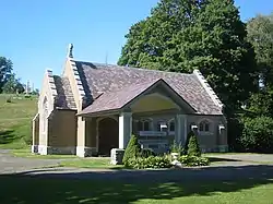 The Cortland Rural Cemetery is located in Cortland, New York, United States. A non-profit, non-denominational cemetery established in 1853, the still operational cemetery has a physical footprint of approximately 44 acres (18 ha) and features the attributes typical of the mid-19th century garden cemetery or rural cemetery, including rolling hills, copious trees, curving roads, and an overall asymmetrical design. The cemetery is regulated by the New York State Department of State NYS Division of Cemeteries and as such has the special designation of 501(c)(13) reserved by independent, non-profit cemeteries in New York. It is managed by a volunteer Board of Trustees and funds its operations with a combination of revenues from operations such as burial fees, plot sales income, and marker foundation installation fees, ongoing donations from Cortland Rural Cemetery Foundation, and donations received from individual donors, other foundations, and in-kind assistance from the City of Cortland. Adjacent to the State University of New York at Cortland, located at 110 Tompkins Street, and an included in the Tompkins Street–Main Street Historic District on the National Register of Historic Places, the cemetery has over 19,000 individual graves on its grounds, including those of many notable figures in Cortland's history. The cemetery's grounds also include noteworthy historical architectural structures, including the Gibson Memorial Chapel designed (circa 1922) by noted architect George W. Conable and an office/garage and superintendent's mansion designed by Carl Wesley Clark (circa 1928). The cemetery has dedicated Veterans sections and is also home to a decades-old Jewish Cemetery associated with Cortland's Temple Brith Sholom.