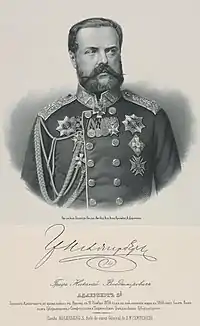 Count Nikolay Vladimirovich Adlerberg (Николай Владимирович Адлерберг; 19 May 1819 – 25 December 1892), was a Russian aristocrat who served as Councilor of State and Chamberlain in the imperial court, as well as governor of Taganrog, Simferopol and Finland.