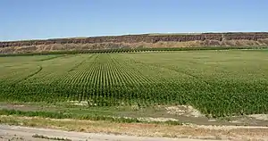 Crab Creek is a stream in the U.S. state of Washington. Named for the presence of crayfish,[7] it is one of the few perennial streams in the Columbia Basin of central Washington, flowing from the northeastern Columbia River Plateau, roughly 5 km (3.1 mi) east of Reardan, west-southwest to empty into the Columbia River near the small town of Beverly. Its course exhibits many examples of the erosive powers of extremely large glacial Missoula Floods of the late Pleistocene, which scoured the region. In addition, Crab Creek and its region have been transformed by the large-scale irrigation of the Bureau of Reclamation's Columbia Basin Project (CBP), which has raised water table levels, significantly extending the length of Crab Creek and created new lakes and streams.[5]
