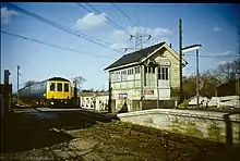 There was originally a signal box on the platform, next to the level crossing. This was removed and relocated to the preserved Colne Valley Railway at Castle Hedingham in the 1970s.