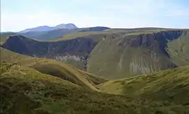 Cribin Fawr is a mountain in Snowdonia, North Wales, situated approximately four miles to the south-west of Aran Fawddwy. It is one of the peaks in the Dyfi hills, a subgroup of the Cadair Idris group. It is a top of Maesglase, connected to its parent peak by the Craig Portas ridge. The top of Cribin Fawr is a large open plateau of peat bog. To the west is Waun-oer, to the north Cadair Idris, to the south Maesglase and Glasgwm to the east.[1]