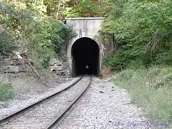 The Cricket Tunnel and Crest Tunnel are a pair of railroad tunnels in northern Arkansas, near the city of Omaha in Boone County. The Crest Tunnel, at 3,500 feet (1,100 m) is the longest tunnel in Arkansas, and is its only curved tunnel. Both tunnels were built by the White River Division of the Missouri Pacific Railroad in the early 20th century. The tunnels were listed on the National Register of Historic Places in 2007.[1]