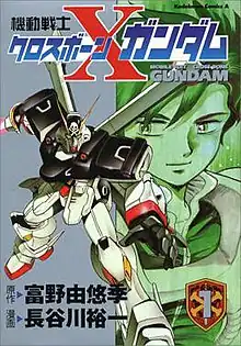 Mobile Suit Crossbone Gundam (機動戦士クロスボーン・ガンダム, Kidō Senshi Kurosubōn Gandamu) is a six-volume manga series written and illustrated by Yuuichi Hasegawa based on notes and information by Yoshiyuki Tomino, serialized in Kadokawa Shoten's Shōnen Ace magazine from December 1994 to March 1997 issues. A sequel to the animated theatrical film Mobile Suit Gundam F91, Crossbone has been officially distributed only in Japan and Italy.[1] Numerous sequels written and illustrated by Hasegawa without Tomino's involvement have been published in Gundam Ace.