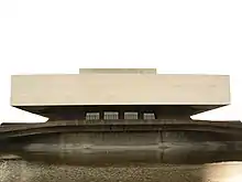 Designed by National Artist for Architecture Leandro Locsin, its design was based and expanded upon the unconstructed Philippine-American Friendship Center. The Tanghalan is a primary example of the architect's signature style known as the floating volume, a trait which can be seen in structures indigenous to the Philippines such as the nipa hut. Being a work of a National Artist, the brutalist structure is qualified to be an important cultural landmark as stipulated in Republic Act No. 10066.[3]
