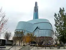 The Manitoba Museum is the largest museum in Manitoba and focuses on Manitoban heritage from prehistory to the 1920s. It also houses a planetarium and science centre. The full-size replica ship Nonsuch, whose voyage in 1668 led to the founding of the Hudson's Bay Company, is the museum's showcase piece.[4] The Manitoba Children's Museum at The Forks, founded in 1983, presents exhibits for children that also reflect the history and economy of Manitoba.[5] Also located at the Forks, the Canadian Museum for Human Rights has recently (2015) completed construction, and is the first Canadian national museum outside of the National Capital Region.[6]