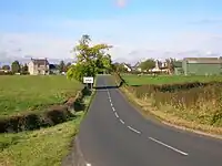 Just across the Annick Bridge is located a dwelling called 'Tail' on Aitken's 1829 map and Roys map of 1745 - 47.[1] The 1850s OS map shows a dwelling known as Hallgate existing in the middle of the first field on the right after crossing Cunnighamhead Bridge. The only remains are the entrance drive as well as ground depressions and hummocks on the satellite views. Tail and Hallgate appear to be in the same location. An area of well established and biodiverse woodland is present nearby, containing a very large specimen of a Black Poplar (2009), a rare tree in Ayrshire.