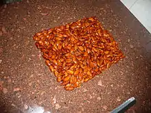 In the province of Rieti (Latium) and in the region of Abruzzo, copeta is prepared with honey and diced walnuts, and is usually soft and in the shape of a square rather than being crunchy and rectangular; it is usually served on laurus nobilis leaves used as a container and preserver.[5][6]