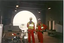 In November 1993, journalists Nick Dutton-Taylor and Damon Brown used the same Saracen bicycles as other construction workers to cycle into the tunnel for an article in Mountain Biking UK.[2][5][6][7][8] They were trained and accompanied by the cycling trainer Clive, but not allowed to go the full way through.[2]