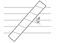 If a thin cylindrical rod is placed on a ruled white paper with the axis of the rod making an angle θ with the ruled lines, the lines will appear broken and tilted at some angle α as shown in the figure, the Refractive Index of the rod can be given as : [1]