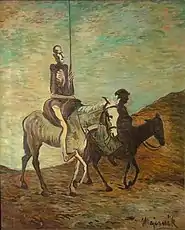 About this time, he was diagnosed with multiple sclerosis. Nevertheless, his work was energized by his opposition to Fascism. By 1942, this was virtually his only theme, as he protested the prison camps, death marches and other evils perpetrated by the Nazi régime. The figure of Don Quixote was a recurring motif of continued resistance, despite overwhelming odds against success.