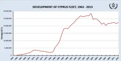 The states's accession to the European Union, in 2004, further boosted the reputation and overall image of the Cyprus flag and the infrastructure of Cyprus’ shipping in general.[16][17][18][19] Settlement of the Cyprus dispute would boost the commercial fleet to new levels, according to, Cyprus Shipping Chamber Director General and European Community Shipowners' Associations Chairman, Thomas Kazakos.[20][21] Under the recent geopolitical developments the government is putting into effect recommendations of a study to help it reposition. The Cyprus Shipping Chamber director general says the five-point action plan is designed to boost the island even further against other maritime hubs and open ship registries.[22][23]