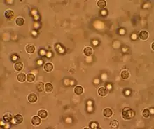 | Multiple white cells seen in the urine of a person with a urinary tract infection using microscopy | |