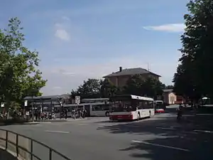 The bus station at Dachau station has five platforms. It is served by MVV routes operated by Dachau city transport (716–720, 722, 726 and 744) and district transport (172, 291, 702–706, 710, 721, 725, 736 and 791).[9]