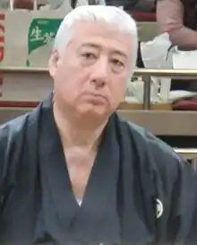 Daitetsu Tadamitsu (大徹 忠晃, born 29 October 1956 as Tadamitsu Minami (南 忠晃)) is a former sumo wrestler from Ōno, Fukui, Japan. He made his professional debut in July 1971, and reached the top division in November, 1983. His highest rank was komusubi. He retired in September 1990, and has worked as a coach at both the original Nishonoseki stable and the new version of the stable, under the elder name Minatogawa.[1]