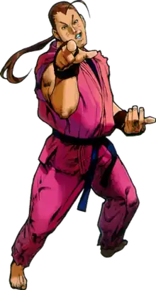Dan Hibiki (Japanese: 火引 弾, Hepburn: Hibiki Dan) is a fictional character from Capcom's Street Fighter fighting game franchise. He was created to parody Ryo Sakazaki and Robert Garcia, the two lead characters of SNK's Art of Fighting series, as Capcom saw Ryo as a ripoff of Street Fighter characters Ryu and Ken. Since then, Dan has become a fan favorite due to his humorous design, signature moves and mannerisms.