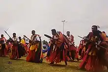 The Sasa is a sitting dance borrowed from the neighbouring islands of Samoa. The dance consists of fast and slow actions to the accompanying chorus. There is no singing in this dance but the instruments are played, which makes the Wallis/Futuna version different from that of the Samoan version which consists of no instruments but the log drum (papa). The pulotu or dance leader normally leads the dance and makes sure that each dancer is following in time. The Sasa is performed at festivals and occasions.