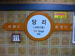 Dangni Station is a subway station of Busan Metro Line 1 located in Saha-gu, Busan, South Korea.